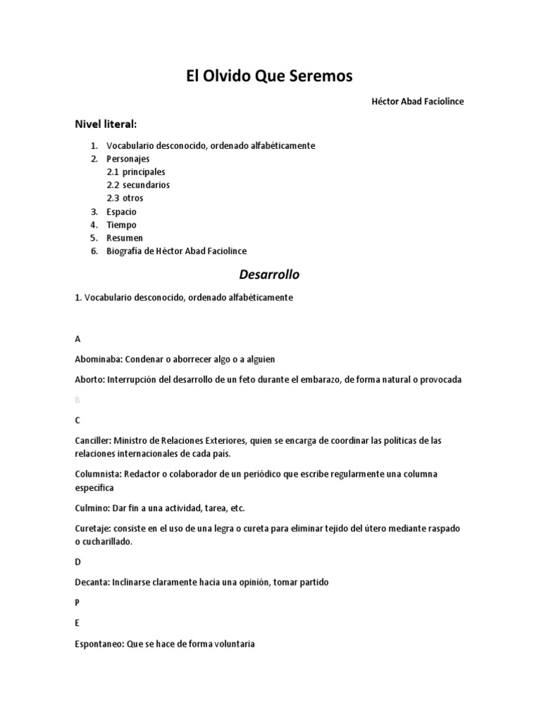El libro llamado el olvido que seremos, destaca por ser una historia autobiográfica. Jasson esteban gualguan guzman facultad de 2. Resumen del libro el olvido que seremos de hector abad. Para obtener una visión completa del aprendizaje debemos saber, pues, no solo cuánto retenemos de lo que hemos aprendido, sino también por qué olvidamos el resto, cómo deformamos. Resumen del libro el olvido que seremos de hector abad by jennifer6daniela6ura.